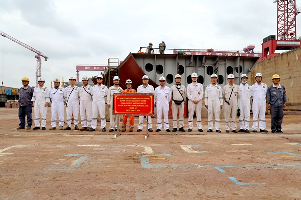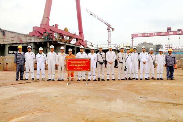 6月23日上午,公司在3#塢區(qū)域舉行船舶進(jìn)塢合攏儀式,5#6#8100箱LNG雙燃料動(dòng)力集裝箱船船體分段開始進(jìn)塢搭載建造。
