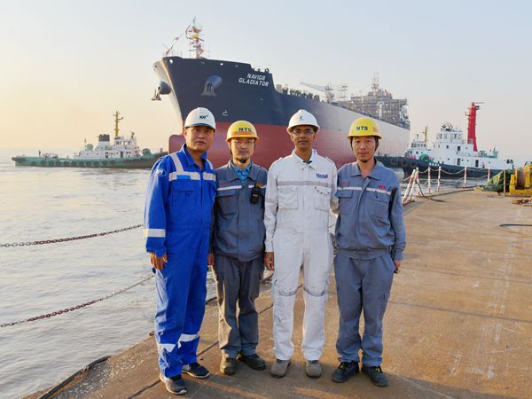 5月22日,14#15#50000噸化學(xué)品油船完成塢內(nèi)所在合攏項目,順利實現(xiàn)下水。