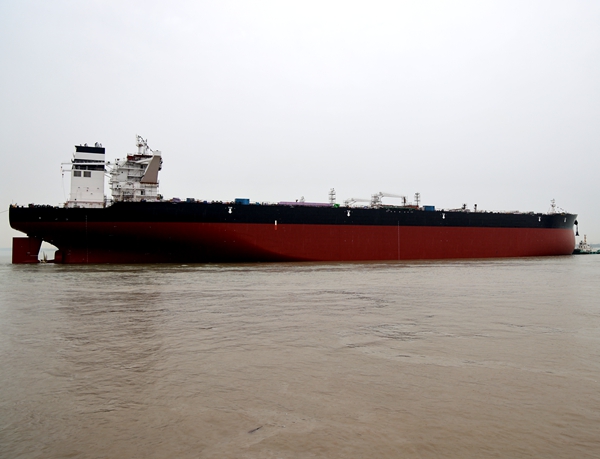 希臘船東Dynacom在我們公司訂購了4艘295000噸油船,此次建成下水的是此系列船里的第1艘船舶,這是我們企業(yè)自主開發(fā)研制的一艘由低速柴油機驅動,裝閃點在或60℃以下原油(閉杯試驗)的遠洋船舶。船舶有連續(xù)的上甲板,采用直立型球首、敞水型尾框架、半平衡舵和定距螺旋槳;貨艙區(qū)域采用雙殼、雙層底、四個平面式縱向艙壁和五個平面式橫向艙壁,分為五對邊貨艙、五對中心貨油艙和一對污油艙,船舶整體技術含量高、裝配精良,滿足最新規(guī)范要求。