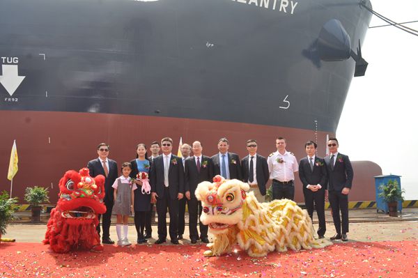 4月24日,公司隆重舉行船舶命名慶典儀式,為新建造的8#、9#、10#、11#50000噸等四艘化學(xué)品油船命名,迎來了新的生產(chǎn)高潮?偨(jīng)理劉海金、常務(wù)副總經(jīng)理張玉永、副總經(jīng)理朱韓鋼、總經(jīng)理助理徐震宇與中遠(yuǎn)海運(yùn)發(fā)展有限公司副總經(jīng)理蘇光、船東Navig8集團(tuán)Gary