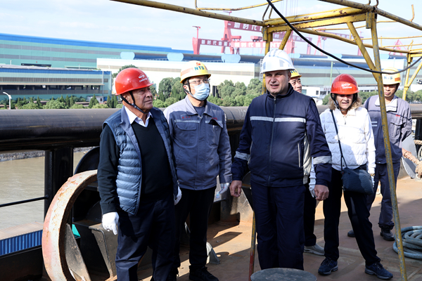 Procopiou一行來到正在緊鑼密鼓建設(shè)中的4號船塢現(xiàn)場,面對已巍然聳立的1000噸龍門吊、規(guī)模更為宏大的1600噸龍門吊也將全面完工的場景,Procopiou對新時代造船持續(xù)投入、升級核心基礎(chǔ)設(shè)施的戰(zhàn)略眼光與魄力表示高度贊賞。他明確表示,如此先進的硬件設(shè)施不僅是船企強大實力的象征,更讓他對Dynacom在此訂購的船舶建造質(zhì)量與按期交付充滿了信心。