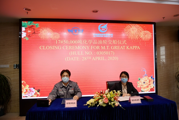 4月29日下午,公司舉行17#50000噸化學(xué)品/油船交付儀式,公司總經(jīng)理劉海金、常務(wù)副總經(jīng)理張玉永與船東中航國際租賃有限公司代表等嘉賓共同出席活動(dòng)。在友好的氣氛中,常務(wù)副總經(jīng)理張玉永與17#50000噸化學(xué)品/油船中航國際租賃有限公司的代表共同簽署交船文本,該船正式交付中航國際租賃有限公司運(yùn)營。隨后,17#50000噸化學(xué)品/油船駛離公司碼頭,開始了遠(yuǎn)航。
