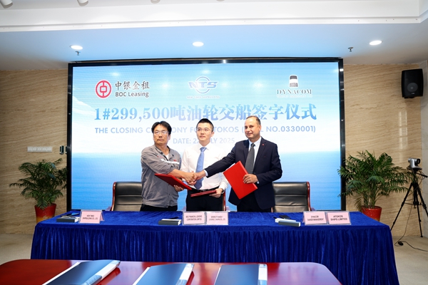 7月22日上午,公司在八樓會議室舉行船舶簽字交付儀式,名為“ATOKOS”號的1#299500噸油船交付希臘船東Dynacom運(yùn)營。