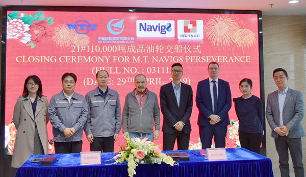 4月29日,公司舉行21#110000噸成品油船簽字交付儀式,總經(jīng)理劉海金、常務(wù)副總經(jīng)理張玉永與中航租賃、N8及國開行的相關(guān)人員出席了交船儀式,見證該船的成功交付。